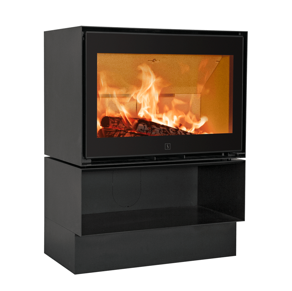 This wood stove will find its place in all interior styles. You will be charmed by its width and its panoramic glass which fits harmoniously on its long black steel bench or its optional wide modules. Since it's all a matter of details, the handle has been designed in black tinted glass for more elegance. The SCAN 1005 BOX offers optimal technical performances and guarantees high efficiency and reduced fine particle emissions.