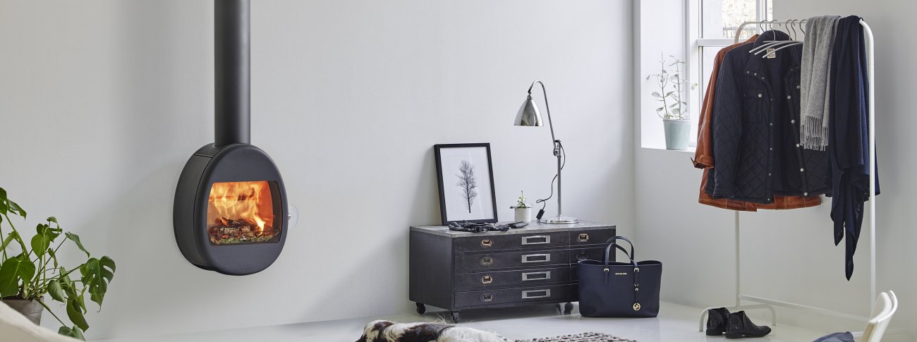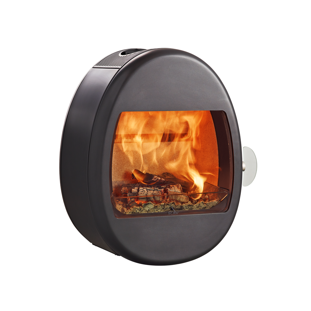 Scan 66-1 is the 66 series wall hung model. The discrete wall fitting gives the impression that the stove is floating against the wall.