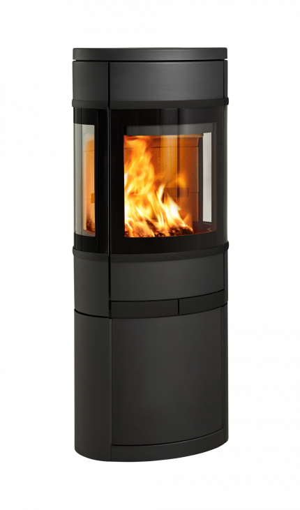 The large side windows allow a unique view of the fire. Choose between handles and mouldings in black or aluminium. This model is available with a pedestal, an open portal, or a closed portal.