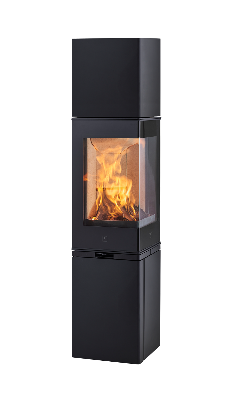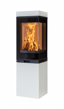 Scan 80-3 has a closed base, while Scan 80-4 has a pratical door for wood storage in the base. If the stove is to be placed in a corner, it is available with a special high top with side outlet.